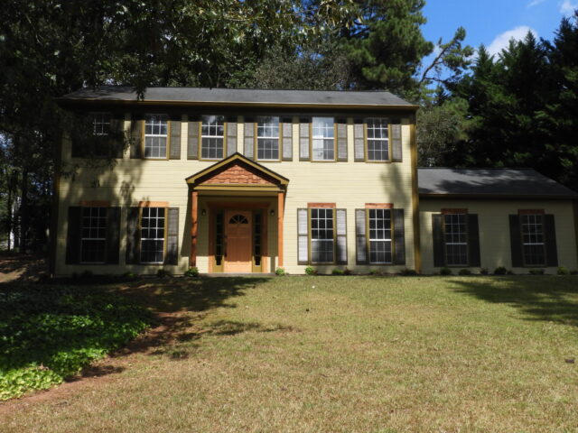 A once weathered and outdated house in Suwanee, Georgia now boasts a modern exterior after a comprehensive makeover that included fresh exterior paint and